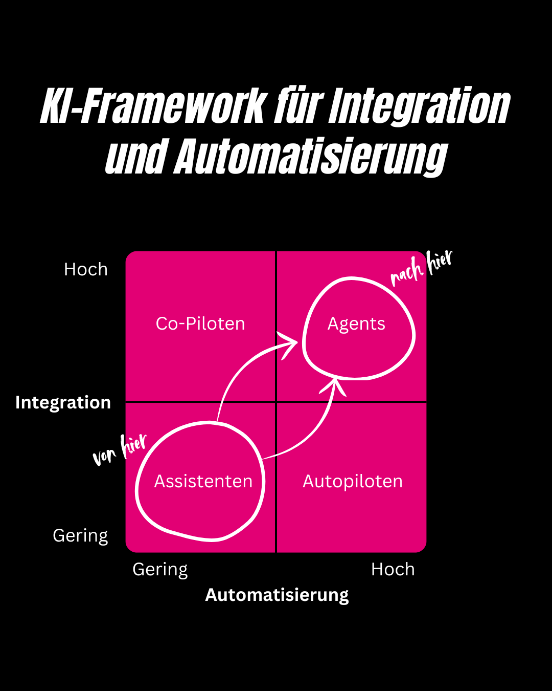 Das KI-Framework, das ich gerne in Kundengesprächen nutze 🧑💻 Assistenten – Tools wie ChatGPT für schnelle Ideen. |